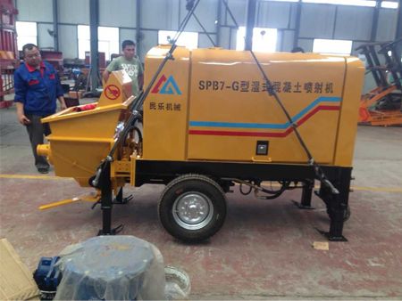 礦用混凝土濕噴機(jī)作為混凝土泵用濕噴時,由于水灰比易于控制,混凝土強(qiáng)度高,噴射密實(shí)度高,可大大完善噴射混凝土的品質(zhì),提高混凝土的勻質(zhì)性,提高了煤礦井下的支護(hù)強(qiáng)度。同時由于回彈率低,合理的降低了生產(chǎn)成本,減輕了工人的勞動強(qiáng)度,大大提高了煤炭企業(yè)的經(jīng)濟(jì)效率和生產(chǎn)效率。適用于大小煤礦井下、皮帶機(jī)、煤倉、水倉、運(yùn)輸大巷等、較大斷面較高面試用、解決了大斷面大量混凝土燒注難題、效果非常好。主要特點(diǎn)采用井下現(xiàn)場攪拌5分鐘后,即可高壓風(fēng)把混凝土輸送到所需工作面、輸送高度在25米以上位置。設(shè)備結(jié)構(gòu)簡單、靈活、牢固、操作方便、井下便以移動、適應(yīng)井下各種環(huán)境作業(yè)。