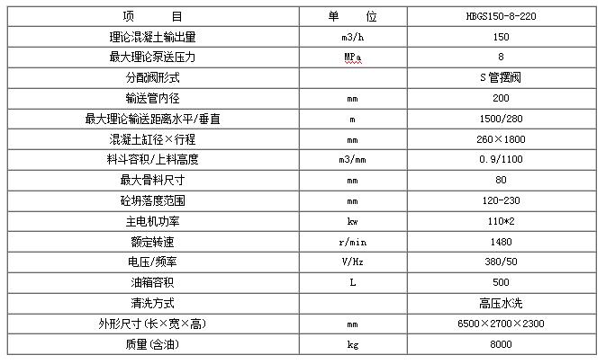 該型號(hào)輸送泵的技術(shù)參數(shù)如下:
