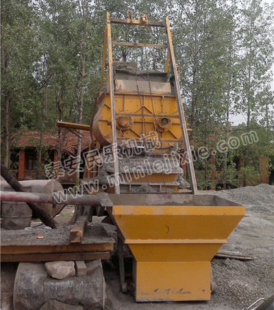 3.攪拌好的混凝土自動(dòng)反轉(zhuǎn)出料到泵送料斗沿管道輸送到地點(diǎn)。